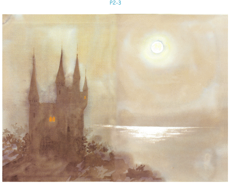「沒有人幫得上忙,」國王悲傷的說,「蒂蒂公主要月亮,除非有月亮,否則她的病就好不了,但是沒有人能夠把月亮拿來給她。每次當我叫人去拿月亮的時候,它就會變得越來越大,越來越遠。你現在唯一能做的,就是為我彈彈你手上的琴。來點哀傷的曲調吧。」
