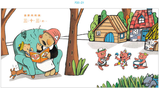 咬布書、撕紙書、把塑膠書放在水裡玩,這些不同材質的書,想必你家小孩通通經歷過吧,書裡最「促咪」的一段,我看到整個大笑出來,話說米米的媽媽唸三隻小豬的故事給米米聽,「米米聽了一次、米米聽了兩次、還要媽媽講三十三次」,講到媽媽都打哈欠了……是吧,是吧!你家是不是常常上演一樣的情境劇?有時媽媽想偷懶,就省略一些隨便唸,這時保證會被小人「抓包兼糾正」,然後被小人吐槽說,「媽媽,你少唸了這段、媽媽,故事不是這樣啦,應該是……才對啦!」(大笑)
