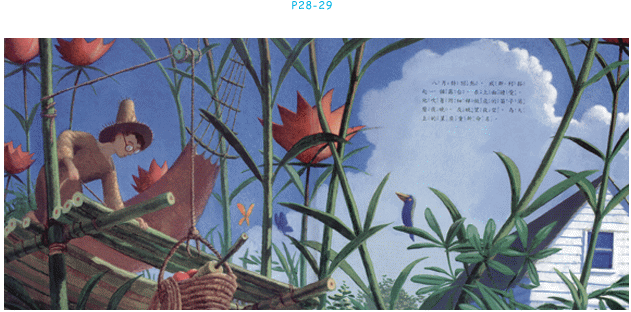 本書圖畫表現出孩子對生活的興趣與好奇,以及專心於自己的興趣的個性。每一幅都呈現視覺動感表現,有靈機一動充滿創意的感覺;細膩的描寫使得園裡的動植物十分豐富,昆蟲、水果、奇妙的光影,人物十分生動,與朋友的互動十分有趣,夜晚的處理發揮了視覺效果,是完整且具可看性的畫面。