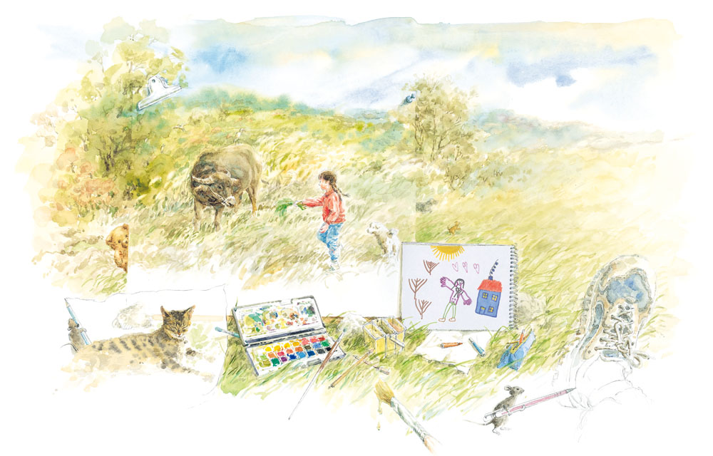 生於苗栗鄉下,兒時志願是當老師與畫家。兩度赴法國進修,獲史特拉斯堡人文科學大學藝術博士。在旅居歐洲的歲月裡,異國文化與生活的種種,對她影響至深,也使她的人生更豐富。她熱情於純繪畫的創作,也著迷於圖畫書插畫的世界,並舉行過多次個展。在本書中,她以揉和純繪畫的水彩圖像敘述手法,訴說她過去在親子互動以及在大自然中體驗種種有情生命的感觸。她在新竹教育大學藝術與設計系擔任教授多年,2010年退休,以期有較充裕的時間完成一些小小的夢想和大大的心願。她目前和家人及幾隻動物住在新竹鄉間草原旁,本書中的景物都可以在那兒找得到。