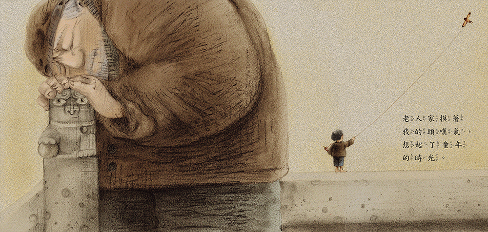淡雅的墨色不僅烘托了石獅,呈現濃濃的民族風,也巧妙融合了中西繪畫的造型與筆法。構圖銳利大膽,張力十足,石獅不變的表情竟在不同角度下貼切地表現不同的心情,每一頁光影變化如悠悠時光遞嬗,是本餘韻無窮的境界之作。(文 / 張怡雯)