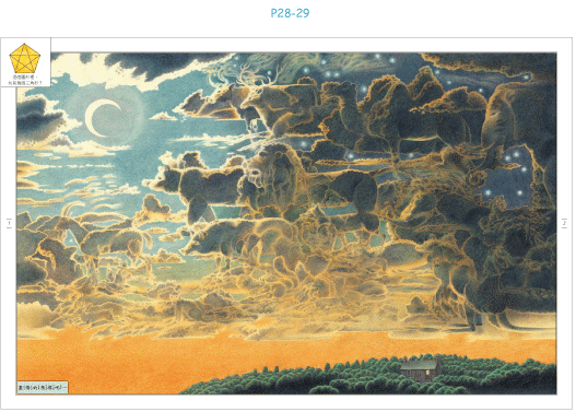 《想像力大考驗》便是這樣的書。作者用極度寫實又虛幻的畫風,將整本書置於有趣的幻想空間,讓人聯想到超現實主義畫家馬格利特的作品,寫實卻不時讓人如入夢境般摸不著頭緒,呈現潛意識隨性流露的幻想。