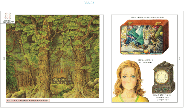 書頁的角落,提供讀者回歸現實思考的小方塊,考驗讀者的邏輯。這些設計,使本書除了圖畫想像之外,還有訓練邏輯思考的功能。薄薄的書,得同時動動左腦與右腦,是訓練思考的有趣書籍!