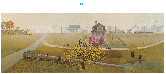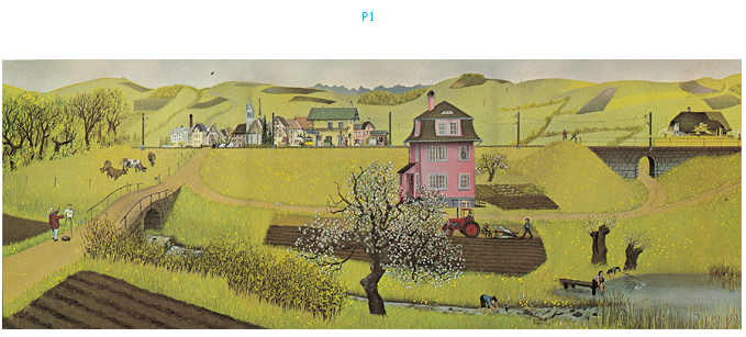 由七張大開圖片組成,繪者由同一角度取景,以三年的間隔時間,忠實記錄一個小鄉村二十年的景觀變化,幾乎沒有任何文字。雖是一九七三年的作品,但當我們一張一張打開圖片,眼看青蔥的草地變成水泥大樓、路邊的田埂變成密密麻麻的高架道路,環境生態的破壞躍然眼前,不言可喻,圖像成了最佳的目擊證人。特殊的形式極具啟發性,完全不受時空限制,深具藝術張力。