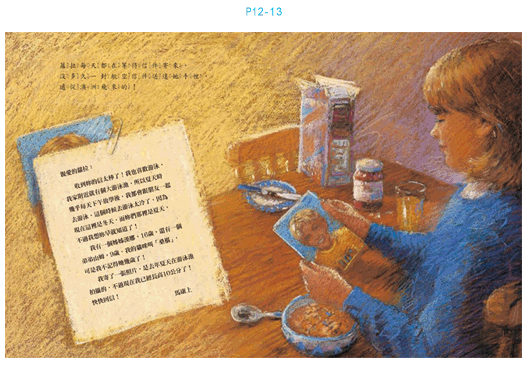 原來圖畫書的閱讀是可以超越時空和文化,甚至超越感官阻礙的。本書描寫一段筆友間的感情,除了遙遠的地理距離外,一方主角還是個視覺障礙者。但在故事中,「看不見」這件事並不是最最重要的事,它提醒我們在人生中親情、友情、健康、快樂和愛,都是不會受到任何的阻礙的,不必只為了身體上的障礙,而失去這些精神上的禮物。 在故事結束之前,我在摸著點字信件「解碼」的過程中,除了享受前所未有的閱讀體驗,也忍不住要感謝上天賜給我的視力,更萬分欽佩視障者追求閱讀與知識的努力。