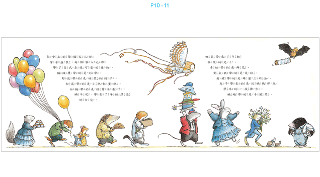 老鼠帶了帽子,蝙蝠帶了手風琴。